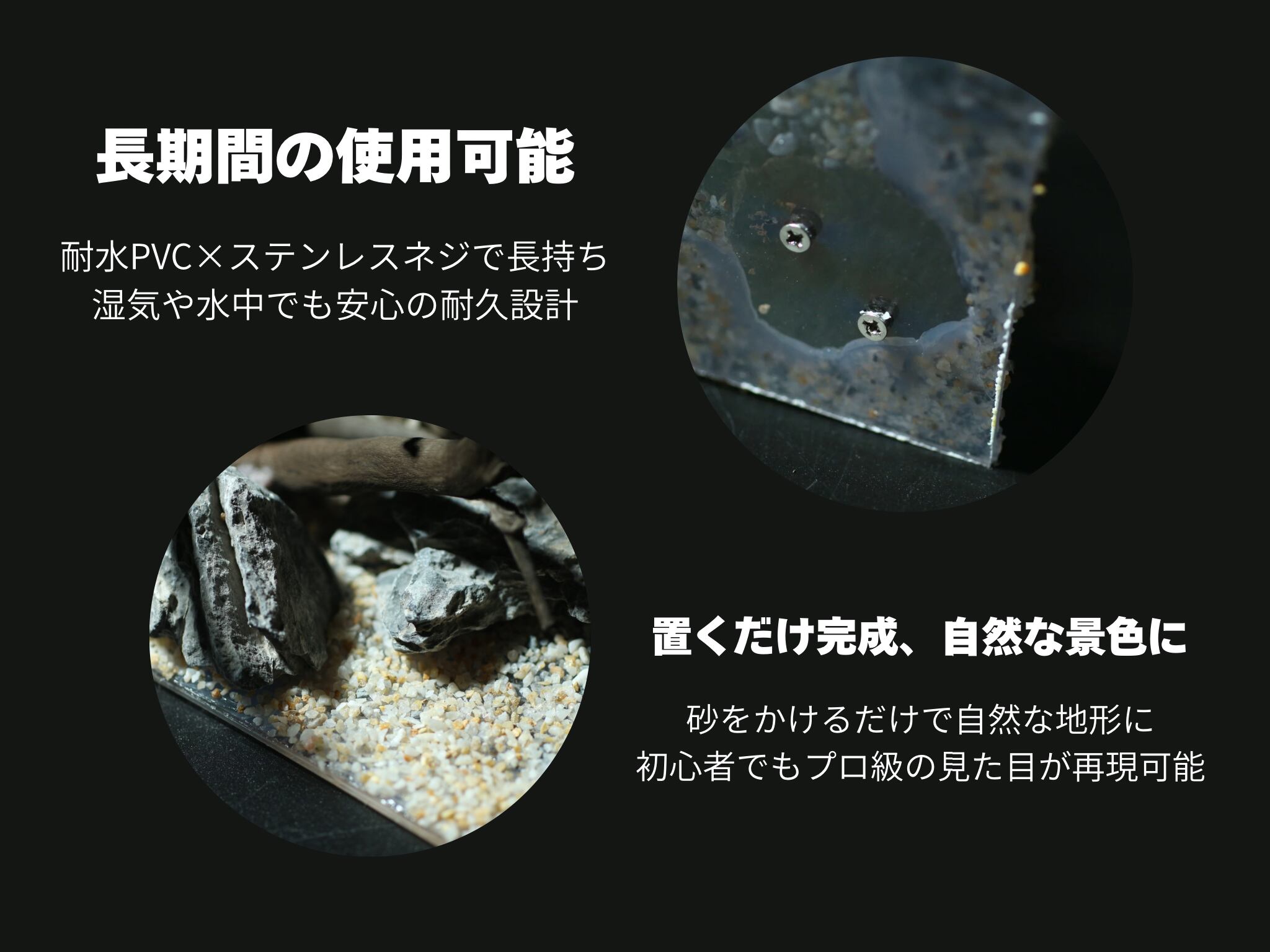 構図・奥行き・視線の流れまで設計済みのため、水を入れ、水草を追加するだけで自然感のある水景を再現できます。